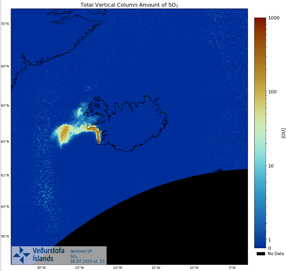 The meteorology office warned residents to stay indoors as gas pollution from the volcano would affect Reykjanesbær, Vogar, Sandgerði, and Garð.